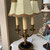 Elegante antike Tischleuchte mit drei sogenannten "Satellitenschirmen" zum aufstecken, natürlich komplett mit neuem Schnurschalter, ca. 52cm hoch.